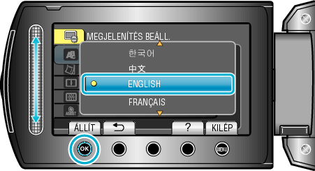 Válassza ki a(z) „LANGUAGE” elemet és érintse meg az