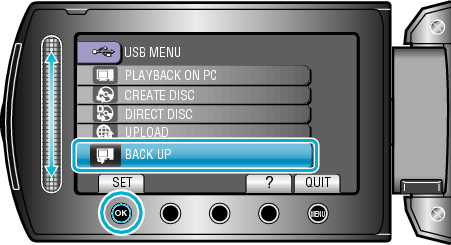 Selecione “BACK UP” (Cópia de segurança) e pressione