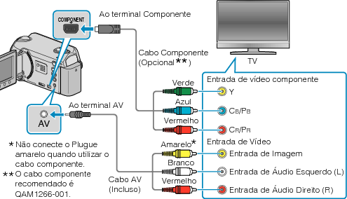 Pressione o botão da entrada externa na TV para alterar a entrada a partir da filmadora pelo terminal conectado.