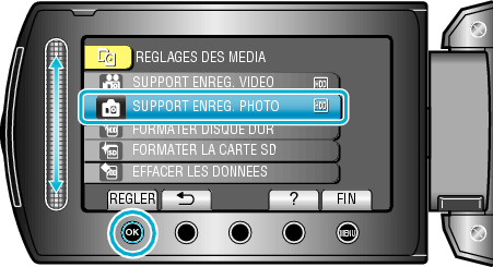 Sélectionnez “SUPPORT ENREG. PHOTO” et appuyez sur