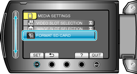 Sletter alle filer på SD-kortet og nullstiller mappe og filnummer til "1". |