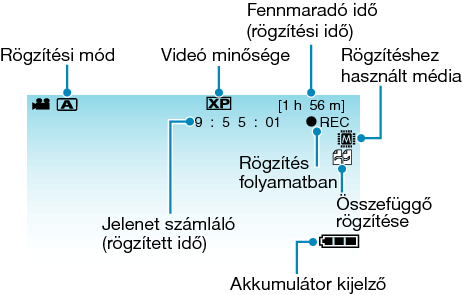 Megjeleníti a(z) „VIDEÓ FELV. MIN.” ikont a rögzítés menü beállítása alapján. |
