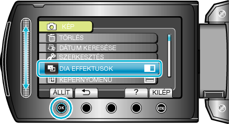Válassza ki a(z) „DIA EFFEKTUSOK” elemet és érintse meg az