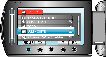 Sélectionnez “LUMINOSITE” et appuyez sur