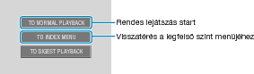 A rendes visszajátszáshoz való visszatéréshez nyomja meg a lejátszó távirányítóján a legfelső menü gombját és válassza ki a(z) „NORMÁL LEJÁTSZÁSHOZ” opciót.