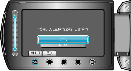 A(z) „ÖSSZES TÖRLÉSE” kiválasztásával az összes lejátszási listát törli.