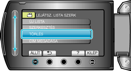 Válassza ki a(z) „LEJÁTSZ. LISTA SZERK” elemet és érintse meg az
