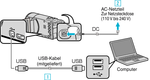 Achten Sie darauf, das mitgelieferte JVC AC-Netzteil zu nutzen.