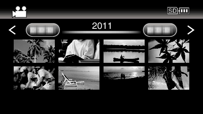 Die mit hoher Auflösung und mit Standardauflösung aufgenommenen Videos werden im Index separat angezeigt. Stellen Sie im Aufnahmemenü für „VIDEOQUALITÄT“ die Option „UXP“, „XP“, „SP“, „EP“, „LS“ oder „LE“ ein, um die in hoher Auflösung aufgenommenen Videos anzusehen. Alternativ können Sie „SSW“, „SS“, „SEW“ oder „SE“ wählen, um vor dem Umschalten in den Wiedergabemodus die in Standardauflösung aufgenommenen Videos anzusehen.