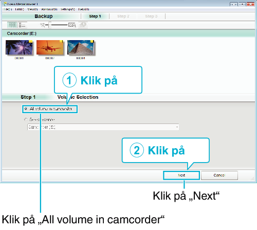 Den medfølgende software Everio MediaBrowser 3 starter på computeren.