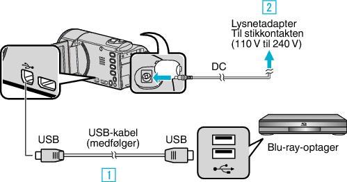 Du kan skabe diske med en Blu-ray-optager ved at koble den til denne enhed med et USB-kabel.