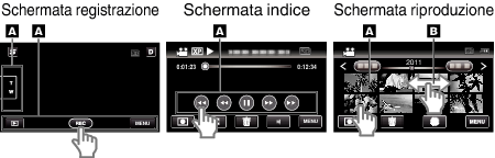 Toccare il pulsante visualizzato (icona) o la miniatura (file) sul touch screen per effettuare una selezione.