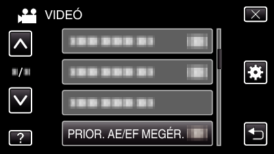 A(z) „PRIOR. AE/EF MEGÉR.” egy olyan funkció, amely a megérintett helynek megfelelően állítja a fókuszt és a fényerőt.