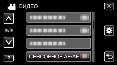 - Когда установлено „СЕНСОРНОЕ AE/AF“, „ФОКУСИРОВКА“ будет автоматически установлен на „АВТО“.