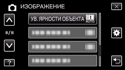 Нажмите „УВ. ЯРКОСТИ ОБЪЕКТА“.
