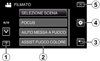 Le seguenti schermate vengono visualizzate durante le modalità video e fermo immagine e funzionano come touch screen.