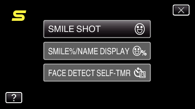 You can configure various settings of face-related functions in either the video or still image recording mode using the face short cut menu.