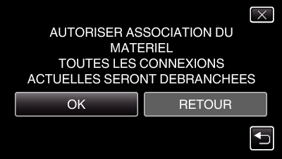 Tapez sur “OK” lorsque “ ATTENDRE REQUETE DE L'APPAREIL BLUETOOTH TOUTES LES CONNEXIONS ACTUELLES SERONT DEBRANCHEES” est affiché.