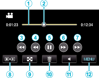 Affiche l’écran d’index précédent (affichage de miniature) Vous pouvez effectuer la même opération avec le levier de zoom. |