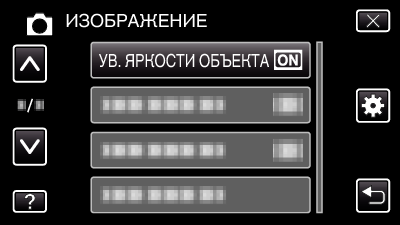 Нажмите „УВ. ЯРКОСТИ ОБЪЕКТА“.