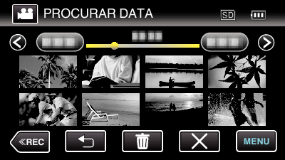 Se existirem vários vídeos gravados e imagens fixas, é difícil conseguir encontrar o arquivo desejado na tela de índice.