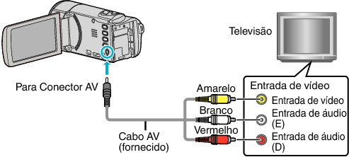 Reprodução > Ligar a uma televisão e reproduzir os vídeos > Ligar através do conector AV