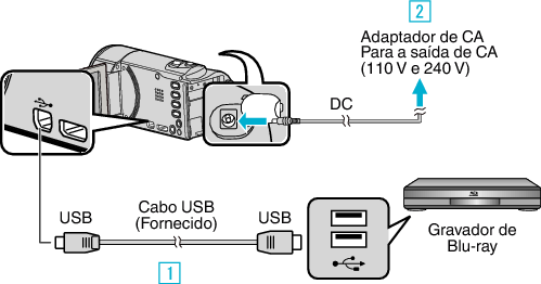 Pode criar discos com um gravador de Blu-ray se o ligar a este aparelho, utilizando um cabo USB.