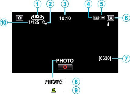 “PHOTO” appare quando viene catturato un fermo immagine. |