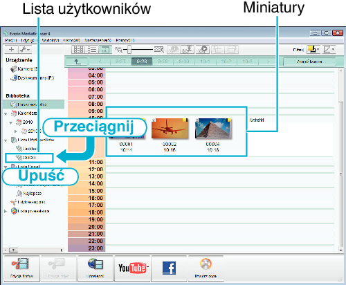 Wyświetlane są miniatury plików nagranych w wybranym dniu.