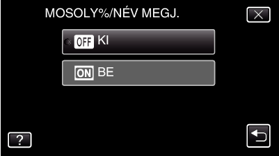 A(z) „MOSOLY%/NÉV MEGJ.” segítségével beállíthatja, hogy mely elemek jelenjenek meg a kijelzőn az arc detektálásakor.
