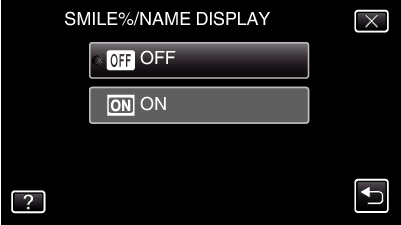 “SMILE%/NAME DISPLAY” allows you to set the items to display when faces are detected.