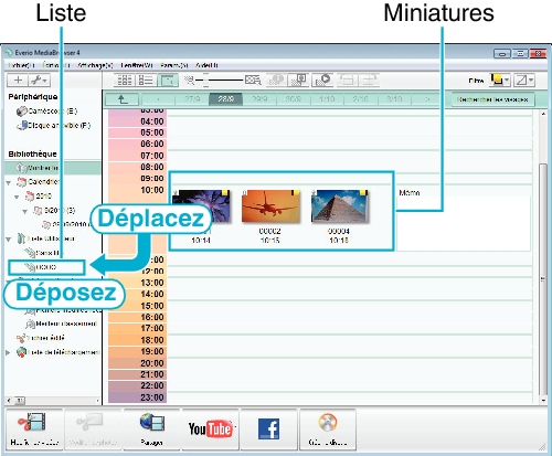 Les miniatures des fichiers enregistrés le jour sélectionné sont affichées.