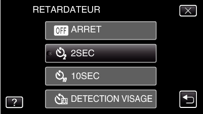 Le retardateur à 2 secondes est utile pour éviter les secousses de la caméra causées en appuyant sur la touche de l’obturateur.