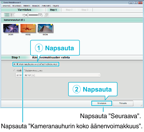 Mukana toimitettu ohjelmisto Everio MediaBrowser 4 käynnistyy tietokoneella.