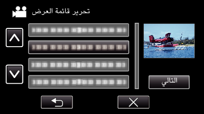 لحذف الفيديو في قائمة التشغيل (الصف السفلي)، اضغط على الفيديو، ثم اضغط على ”إلغاء“.