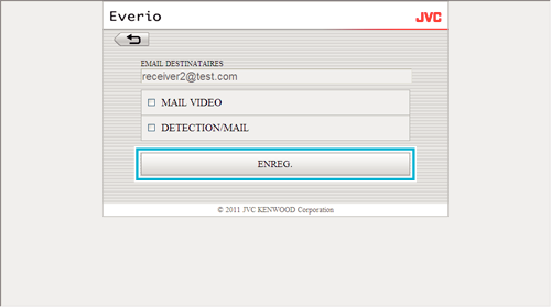 Sélectionnez la case à cocher “MAIL VIDEO” et “DETECTION/MAIL” pour définir l’adresse comme destinataire.