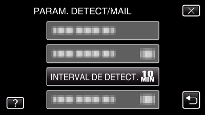 Régler l’intervalle de détection de cette caméra (PARAM. DETECT/MAIL) |