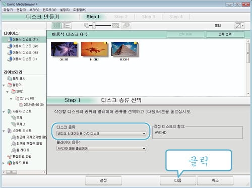 디스크에 복사할 파일을 순서대로 선택합니다.