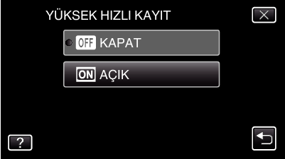 Yüksek hızda kaydı iptal etmek için, “KAPAT„ üzerine dokunun.