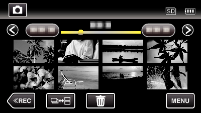 Geeft het indexscherm weer (miniatuurweergave) om te wissen |