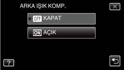 Ayarlamadan sonra, arka ışık ikonu BACK_LIGHT_COMPENSATION belirir.