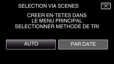 Lorsque “AUTO” est sélectionné, les vidéos avec les mêmes dates d’enregistrement sont affichées en groupes.