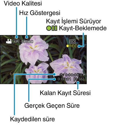 Videonun gerçek kayıt yapılan süresini görüntüler. Kayıt süresi, çerçevelerin/karelerin birimleri cinsinden artar. |