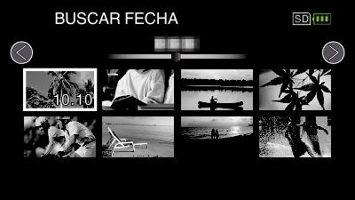 Presione UP/< o DOWN/> para seleccionar la fecha de grabación y presione OK.
