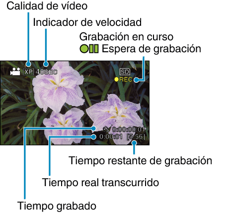 Muestra el tiempo real grabado del vídeo. El tiempo grabado aumenta en unidades de fotogramas. |