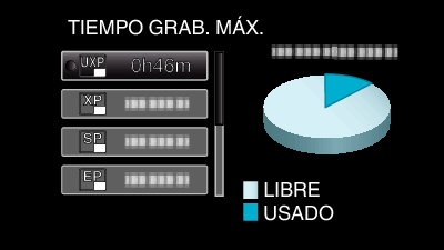 - Puede cambiar la calidad de vídeo de la pantalla de tiempo restante de grabación.