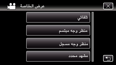 تشغيل المشاهد المحتوية على ابتسامات مكتشفة كملخص. من الضروري تعيين ”تصوير ابتسامه“ في ”إعداد التسجيل“ على ”تشغيل“ والتسجيل مسبقًا. |
