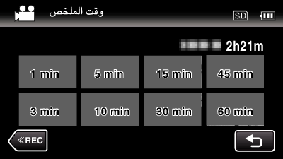 يتم العرض عن طريق اختصار مقطع الفيديو إلى الفرتة الزمنية المحددة مسبقًا. بناءً على وقت تسجيل مقطع الفيديو، يمكن اختيار وقت التشغيل من: دقيقة واحدة و3 دقائق و5 دقائق و10 دقائق و15 دقيقة و30 دقيقة و45 دقيقة و60 دقيقة. ويتم تشغيل كافة الأجزاء المسجلة (وقت التسجيل أقل من دقيقة واحدة). |