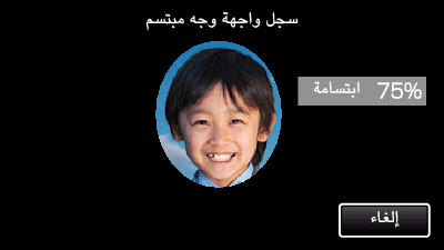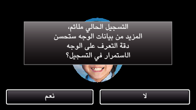 لزيادة درجة دقة التعرف على الوجه، يجب ملائمة وجه واحد فقط ضمن الإطار والتسجيل في بيئة ساطعة.