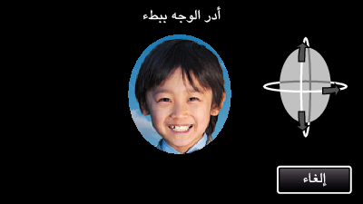 قم بتدوير الوجه ببطء أثناء النظر إلى الكاميرا. يمكن سماع صوت عندما يكتمل التسجيل لكل اتجاه. (4 مرات كإجمالي)